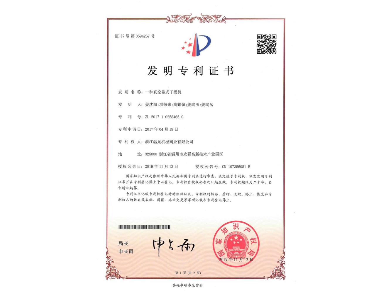 溫兄控股集團(tuán)獲得一項(xiàng)發(fā)明專利