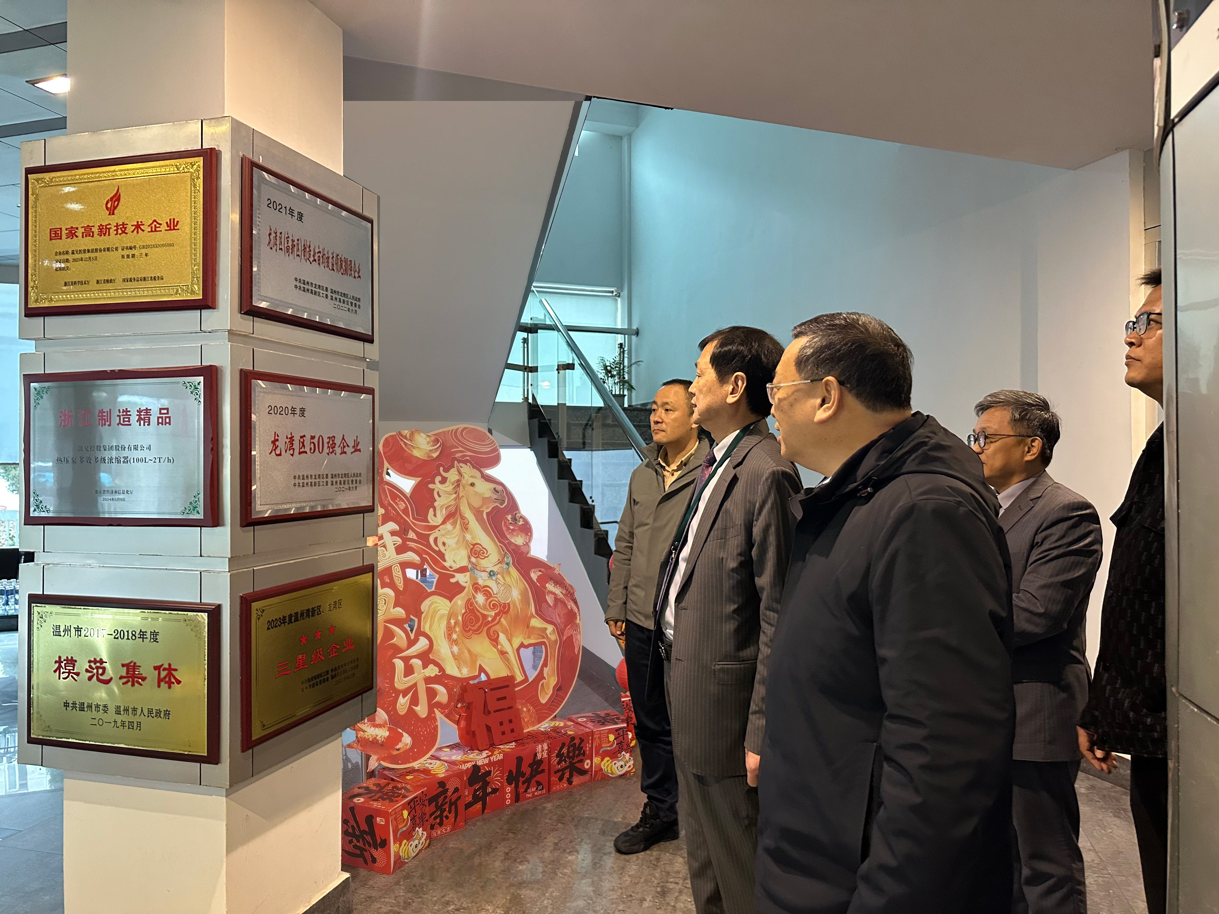 2026年3月5日,溫州市龍灣區(溫州灣新區)慈善聯合總會會長周贊、秘書長陳中杰一行,赴溫兄控股集團開展慈善慰問活動,送來關懷問候與暖心服務,并現場授予集團“愛心龍灣 與善同行”銅牌,以實際行動踐行慈善初心,凝聚轄區向善合力。